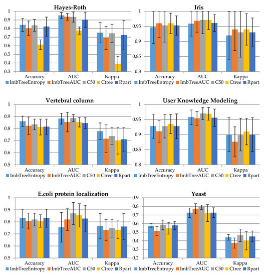 32. Ferri, C.; Flach, P.; Hernández-Orallo, J. Learning decision trees using the area under the ROC curve. In Conference: Machine Learning. In Proceedings of the Nineteenth International Conference (ICML 2002), University of New South Wales, Sydney, Australia, 8–12 July 2002. [Google Scholar]