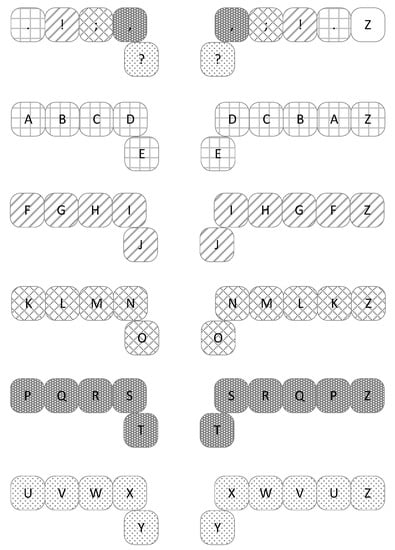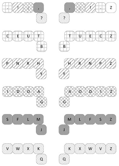 - ISO. ISO/IEC 9995-2:2009 Information Technology—Keyboard Layouts for Text and Office Systems—Part 2: Alphanumeric Section; ISO: Geneva, Switzerland, 2009. [Google Scholar]