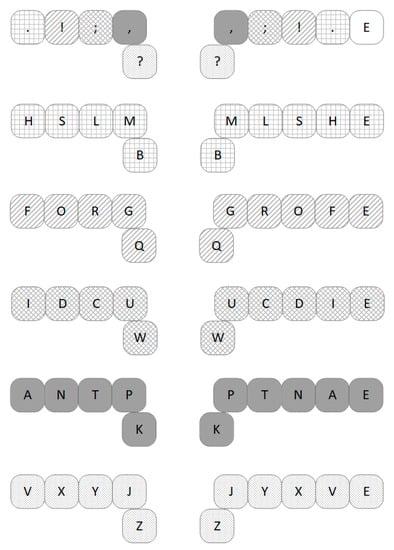 - Norvig, P. English Letter Frequency Counts: Mayzner Revisited or Etaoin Srhldcu. 2012. Available online: http://norvig.com/mayzner.html (accessed on 2 November 2020).