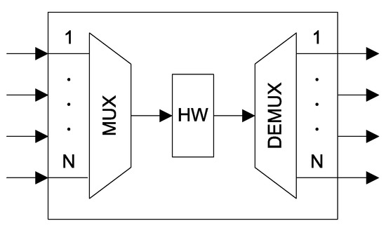Hardware virtualization for N distinct data streams that perform the same computation. The N streams are multiplexed into a shared hardware (HW) block, processed, and then demultiplexed back into N streams.