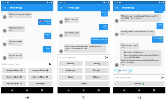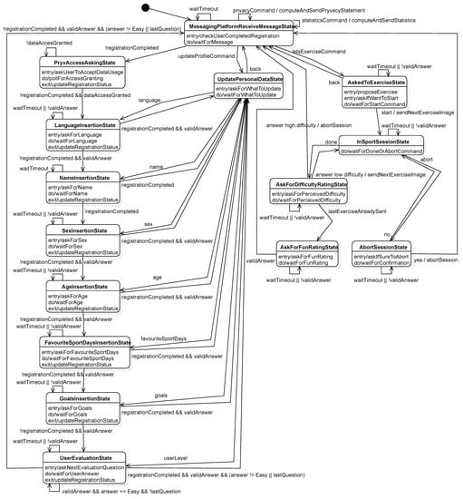 - Fadhil, A.; Gabrielli, S. Addressing challenges in promoting healthy lifestyles: The al-chatbot approach. In Proceedings of the 11th EAI International Conference on Pervasive Computing Technologies for Healthcare, Barcelona, Spain, 23–26 May 2017; ACM: New York, NY, USA, 2017; pp. 261–265. [Google Scholar]