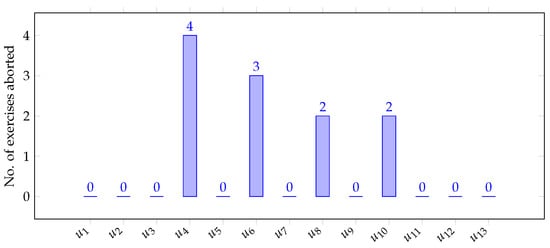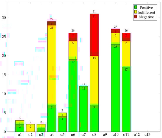 Concerning the user satisfaction, the summary of all the evaluations provided by the users about each set of exercises is shown in Figure 22. Overall, it is possible to assert a majority of positive feedback followed by indifferent , and only negative. The negative/indifferent feedback have been used by the medical personnel supervising the test to understand better the user–exercise coupling and advance in the formulation of a personalized user model.