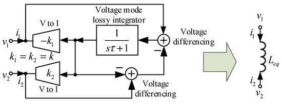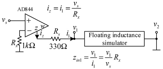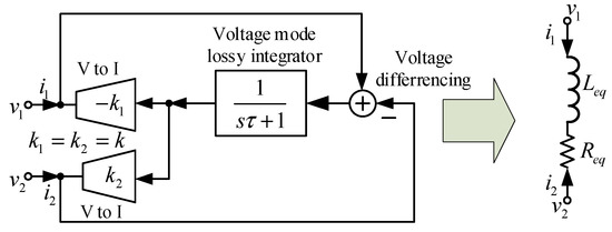 As can be concluded from (6), the input impedance of the block diagram in Figure 15 can be considered the impedance of the floating series connection of an inductor and a resistor, where its equivalent inductance value is the same as that given by (2) and the equivalent resistance value is given by