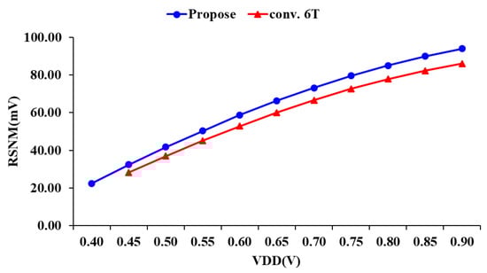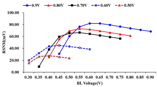 The RSNM simulation results of 6 T SRAM for pre-charge voltage adjustment.