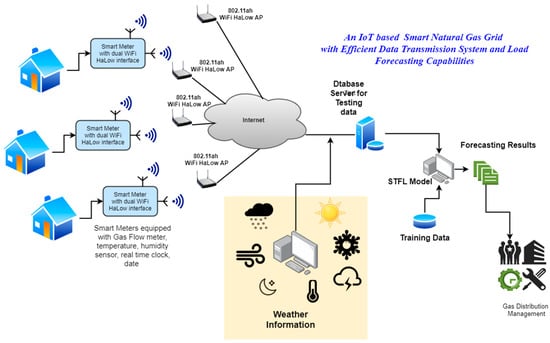 All over the world, natural gas is being used in homes and industries for heating and fueling purposes. Many research and development organizations are conducting their research in the area of IoT-based smart grids for natural gas [6,7]. Gas utilities gather real-time data for load forecasts, efficient gas transportation, pressure gauging, gas theft detection, gas leaks, pipe corrosion, and remote cut off in emergency situations. To achieve this, communication networks with advanced infrastructure are required; smart meters and sensors use these networks for data transmission. All the components are connected to form a smart grid [8]. Once the network is established [9], data can be collected by gas utilities even from old non-smart gas meters by attaching some extra devices and sensors [10]. Then, the data is analyzed with the help of artificial intelligence software for further actions [11].