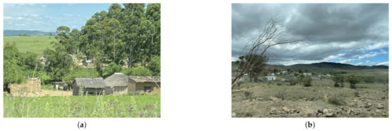 Rural S. African homesteads without electricity services. (a) Paulpietersburg, KwaZulu Natal, South Africa. (b) eNgojini, Eastern Cape, South Africa.