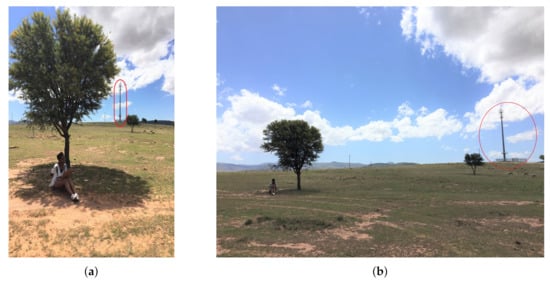Limited cell reception forces community members to travel kilometres to be closer to cell towers (circled in red) in order to conduct online activities. (a) Supervisor searches for a stable cell signal in order to attend student’s online MSc defense session; (b) Members of the community seek shelter from the summer sun after traveling to the cell tower in order to participate in online university activities.