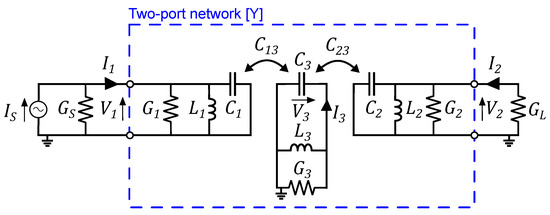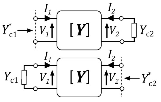 The equivalent circuit of Figure 4 can be modelled as a two-port network with admittance matrix . From (1), (32)–(34), the admittance matrix can be determined: