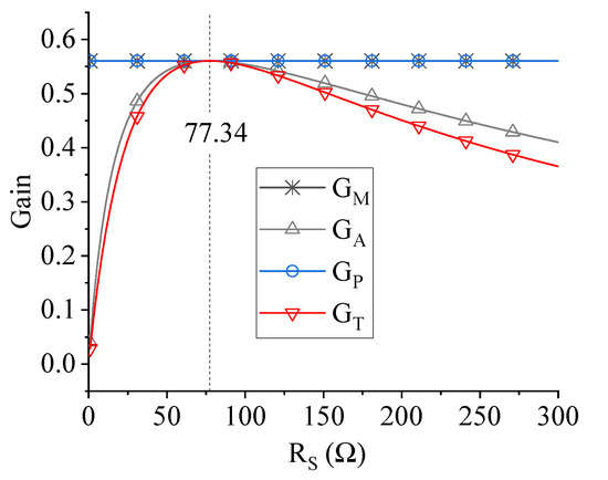 From Kirchhoff’s current law, it is obtained that . Combining with (1) and , the transducer gain can finally be expressed as: