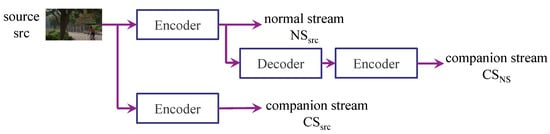Companion stream CSsrc is encoded from the source video and CSNS is constructed from the decoded normal stream.