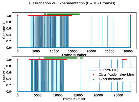 Example of packet classification vs. real occurrences using the threshold-based classification model.