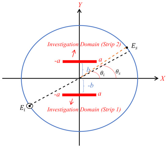 Let us consider that one strip is located on the x-axis, as shown in Figure 14. First, we analyze the theoretical of the problem to estimate the resolution and then simulate it numerically.