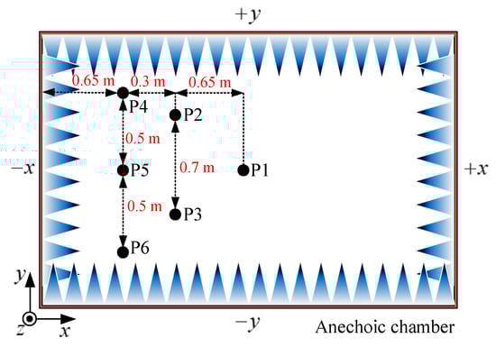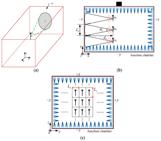 where is the beamwidth in the vertical plane. Finally, the position to be measured for the plane is shown in Figure 5c. The measurement method of the remaining five walls is the same as that of the plane.