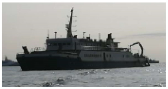 To validate the proposed method, an experiment was conducted in a wide sea area far away from the channel in Sanya, where there is almost no influence from the other objects. The depth of the experimental sea is 26 m, while the experimental area is 2.6 km long and 1.1 km wide. The ship used in the experiment is Haihong No. 1, shown in Figure 2, which is 54 m long and 13.2 m wide.