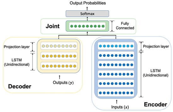 This study uses a unidirectional RNN transducer as a base model (Figure 2). We used the version presented in []. The RNN-T model consists of an encoder network, a decoder network, and a joint network. Intuitively, encoder networks can be considered as acoustic models, and decoder networks are similar to language models.