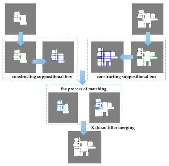 The map merging method based on suppositional box is mainly divided into three steps: suppositional box construction, map matching based on suppositional box, and map merging.