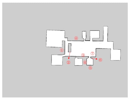 Wall marked. ➀–➇ are the number of the selected wall.