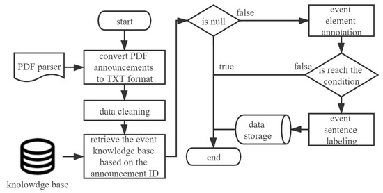 Motivated by distant supervision data labeling method based on the knowledge base [31], we first construct Fonduer-based financial event knowledge base, and then align the knowledge base to the documents (i.e., announcements) with distant supervision method to obtain a large amount of labeled data.