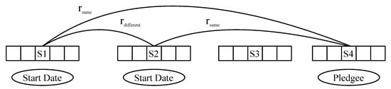 An example of relation-aware. Start Date and Pledgee can appear in an event like EO, but Start Date in S1 and Start Date in S2 can not appear in an event.