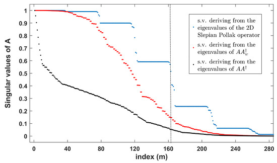 Now, by means of numerical experiments, it is checked that actual singular values of A and its approximated version computed starting from the eigenvalues of become negligible at the same index.