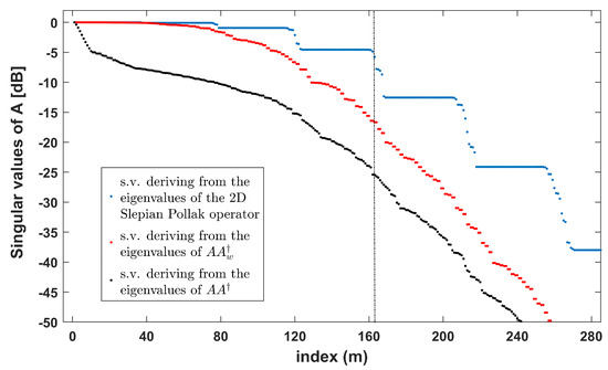 A particularly interesting discretization scheme is the sampling theory approach developed in [45,46]. The latter, under the hypothesis that the operator is convolution and band-limited (with denoting the adjoint operator of T ), provides not only an efficient sampling of the radiated field (or in other words the grid of points where the data must be collected) but also a strategy to discretize the linear model .