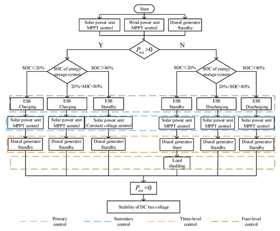 The control system of the islanded DC microgrid mainly includes the physical layer, device-level control and system-level control of islanded DC microgrid [28]. The control system of islanded DC microgrid is shown in Figure 8.