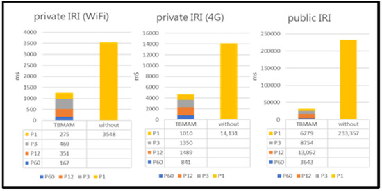 As shown in Figure 16, through 1G Fast Ethernet or 4G, a client spent 1262 or 4690 ms to obtain the newest node state information from the private IRI node with the TBMAM indexing. If the IRI node does not support the TBMAM indexing, the client must spend 3548 or 14,131 ms to obtain the newest node state information. When the client queries the public IRI node for the newest node state, it spends 31,728 ms if the IRI node supports the TBMAM indexing. However, it must spend 233,357 ms if the IRI node does not support the TBMAM indexing. The previous result shows that the TBMAM indexing can reduce the cost of obtaining the new node state information.