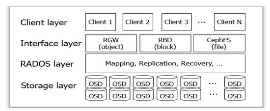 - D’Atri, A.; Bhembre, V.; Singh, K. Learning Ceph: Unifed, Scalable, and Reliable Open Source Storage Solution, 2nd ed.; Packt Publishing: Birmingham, UK, 2017. [Google Scholar]