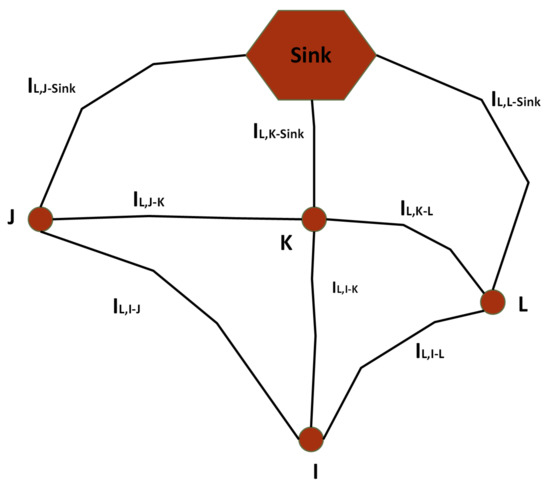 - : Link Cost: The cost of a link between a transmitting node u and a receiving node v is calculated as follows:where denotes node u’s transmitted power and denotes node v’s received power.