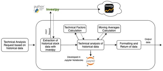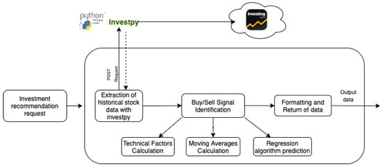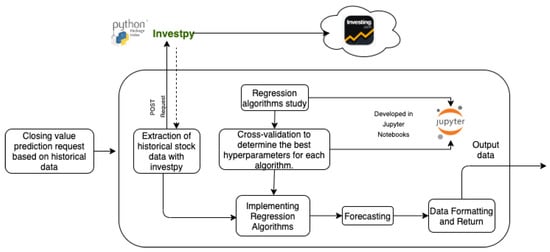 After obtaining the historical data from the last five years of a Spanish continuous market company share through the previously created Python package [8], the Prediction System’s design specification is made, as shown in Figure 6.