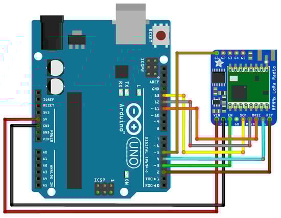 Wiring of LoRa (Long Range) radio module with Arduino UNO.