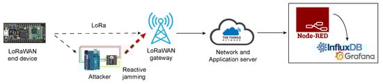 - Perković, T.; Siriščević, D. Low-Cost LoRaWAN Jammer. In Proceedings of the 2020 5th International Conference on Smart and Sustainable Technologies (SpliTech), Split & Bol, Croatia, 1–4 July 2020; pp. 1–6. [Google Scholar] [CrossRef]