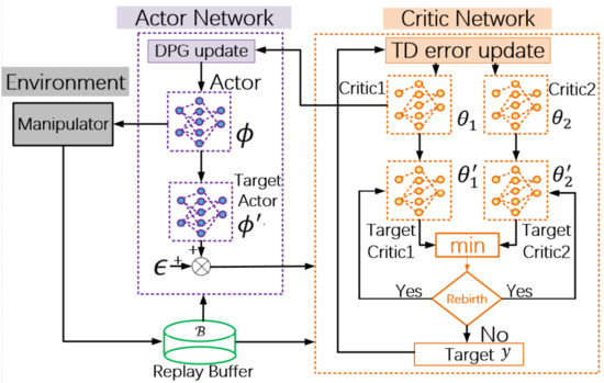 Through the rebirth mechanism of target critic network in Figure 4, the network that is not suitable for evaluating the learning of the manipulator can be eliminated in time continuously. The target critic network that is rebuilt can participate in the process of evaluating the learning of the manipulator.