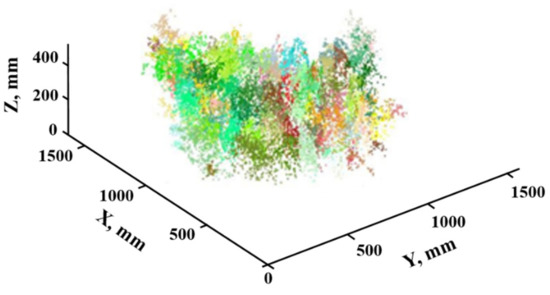 Clustering methods have been investigated for crop-density estimation, which should be based on the accurate cloud-point information segmented from the whole data, as well as with the established prediction model. Christiansen et al. [19] constructed the voxel grids depending on filtered point-cloud data of mature wheat, and put forward a wheat biomass prediction model. Hosoi and Omasa [20] adopted the LiDAR to collect cloud data of rice canopy at different growth stages and established the relationship between rice canopy volume and density according to voxel estimation. Velumani et al. [21] installed the signal LMS400 LiDAR to scan wheat field, and the voxel segmentation and mean-shift algorithm were used to segment the wheat head point cloud. Then the number of higher point-cloud clusters was calculated as the number of wheat panicles.
