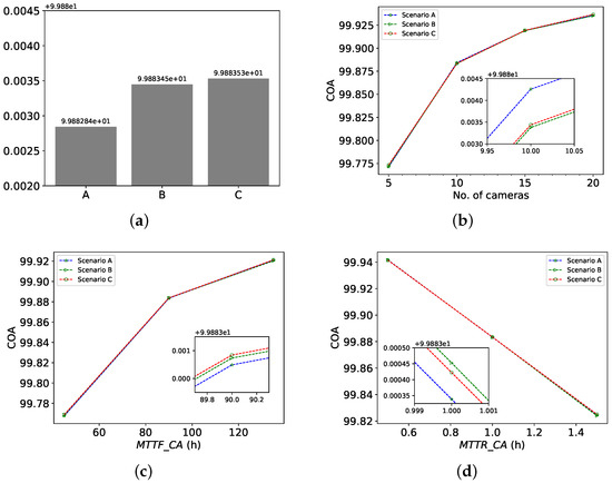 Some input parameters are needed to evaluate the proposed model. The values are the same as those used for the availability assessment listed in Table 7. However, a variation of the cameras