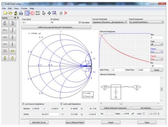Smith chart utility for finding elements of the matching circuit.