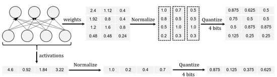 An example showing a complete normalize-then-quantize process regarding the weights and the activations is depicted in Figure 5.