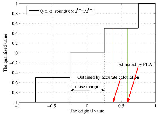 In our design flow, all the operands are also approximated by quantization, which, in turn, helps alleviate the mismatch effect just mentioned. As suggested in Figure 8, the noise margin regarding a quantized operand may just reconcile the deviations (errors) deduced from PLA of the or functions.