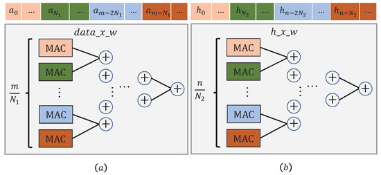 Note that the MAC (Multiply and accumulate) unit marked in a color should coordinate those data slices marked with the same color. A similar procedure can also be applied to the module .