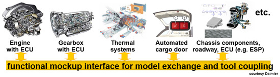 Automotive industry applications of Functional Mock-up Interface (FMI), allowing models from several domains to be simulated together.