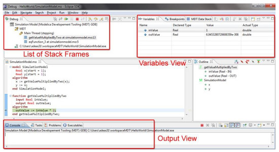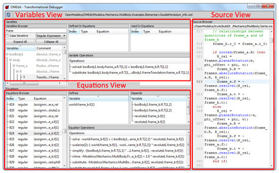 - Pop, A.; Sjölund, M.; Ashgar, A.; Fritzson, P.; Casella, F. Integrated Debugging of Modelica Models. Model. Identif. Control 2014, 35, 93–107. [Google Scholar] [CrossRef]