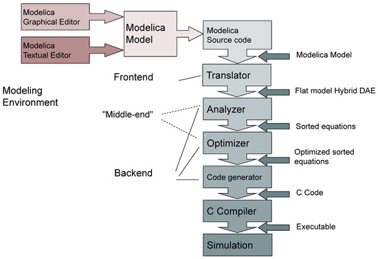 - Sjölund, M.; Fritzson, P.; Pop, A. Bootstrapping a Modelica Compiler aiming at Modelica 4. In Proceedings of the 8th International Modelica Conference, Dresden, Germany, 20–22 March 2011. [Google Scholar] [CrossRef]