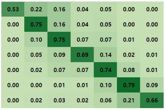 According to these results, it can be observed that each group is a set of datasets with similar performance, and the performance difference between the two groups is significant. Compared to Table 2, we can see that the two groups can be distinguished by the length of the section. D1, D2, and D3 are extracted from different short sections of 18 s. On the other hand, D4, D5, and D6 are extracted from different longer sections. There is no difference in performance when compared between sections of similar length, but when compared between sections of different lengths, it is better if the length is longer. Therefore, we conclude, first, that the features we used are not influenced by the timing of the extraction section. We extracted and compared three short sections including combat, which are important moments in the game, but they showed the similar performances. Second, we concluded that the length of the extraction section should be longer to show better performance.