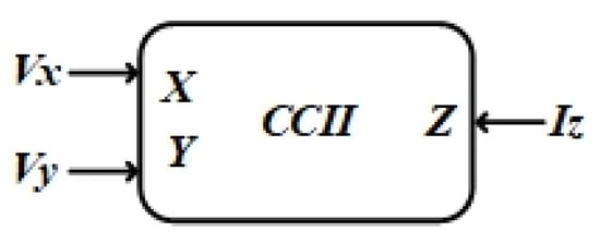 - Smith, K.; Sedra, A. The current conveyor—A new circuit building block. In Proceedings of the Proceedings of the IEEE; Institute of Electrical and Electronics Engineers (IEEE): Piscataway Township, NJ, USA, 1968; Volume 56, pp. 1368–1369. [Google Scholar]