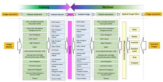 In this section, the retrieval architecture is presented. It consists of four different steps, including image acquisition, image filtering, parallel feature extraction, and assessment blocks; see Figure 1. Image acquisition is used to process and turn analog images of physical scenes or an object’s internal structure into digital format. This block is used to capture the image from a user or a system and convert it to the retrieval format for further comparison. Image filtering is another step where different filters could be applied to the captured images for better retrieval accuracy. Then, the captured image(s) features are extracted to be compared with the indexed images. The assessment step is an optional block where a supervised image retrieval judgment and the final conclusion are reached.