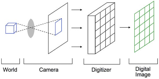 Image acquisition is the development of a digitally encoded image of an object’s visual properties, such as a physical scene or an object’s internal structure. The image acquisition block is used to transfer images into an array of numerical data that a computer could handle. Image sources could be scanners, cameras, Closed-Circuit Television (CCTV), etc. Therefore, images come with different qualities based on the image source. Image Acquisition is the first step in any image processing system. As shown in Figure 3, image acquisition has three steps, including capturing the image using a camera, digitization, and the final step forming the digital image.