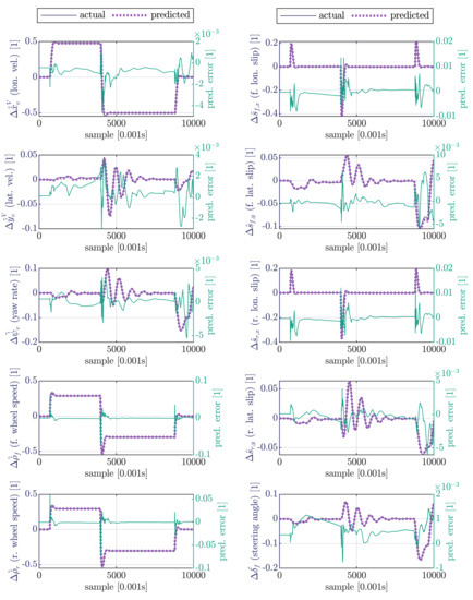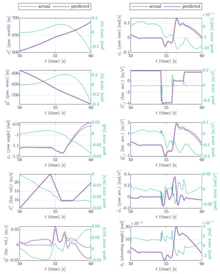 The only difference in the input vectors of different variants is that yaw angle is additionally provided for the V2–3 networks. The output vector of the neural network consists of the changes of a subset of vehicle state variables as time reaches , calculated as