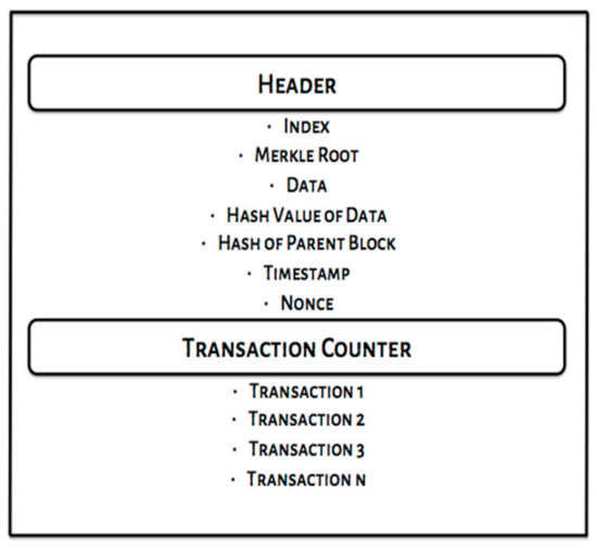 Basically, blockchain is a ledger that maintains a list of transactions in an immutable, append-only fashion that is growing with time and expanding the chain in a secure manner; the blocks within the blockchain are protected using cryptographic algorithms that impose the integrity of the transactional details [35]. The blockchain consists of permanent records that cannot be altered or tampered with, thus ensuring the integrity of the data. The data within the blockchain run through the distributed nodes within the network. The feature that makes the blockchain different from other technologies is that it timestamps the data records, providing a total order of blocks. A block consists of the hash value of the data stored in that block, along with the hash value of the previous block, which helps in connecting the chain of blocks. A new block can only be added to the existing blockchain after the successful completion of the consensus mechanism. This consensus mechanism has to control the permissions for entering into the chain, following the protocols for securely verifying the blocks and maintaining the consistency of the records at every node of the network. Hence, in conclusion it can be said that the blockchain is a distributed ledger that stores all the transactional data over a decentralized network in a secure and verifiable fashion. A blockchain-based framework can handle security issues such as unauthorized access of data/transactions, dependency on a third party or central authority and the unreliability of other participants.