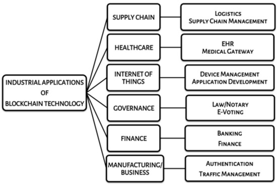 Blockchain technology has a vast range of features that can be used for managing transactional records in any type of industry. The way it protects and secures the data with transparency and ensuring its integrity makes it a perfect choice for applications where sensitive data are involved. As the blockchain works on a distributed network platform, every node within the network holds a copy of the data, which makes it difficult for the attacker to modify or tamper with it. Blockchain is changing the means of information sharing over the internet and is being adopted by several industries globally for conducting business transactions in a secure manner. Some of these applications are discussed in this paper and depicted in Figure 8 below: