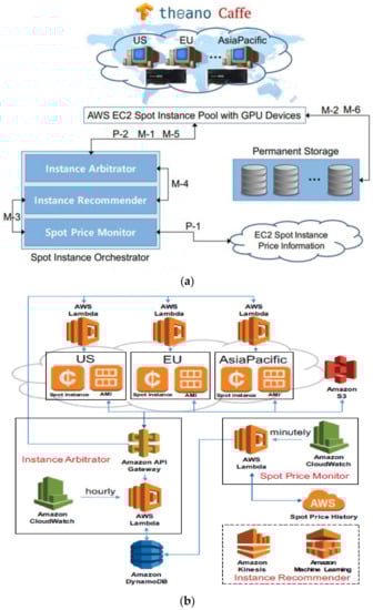 (a) DeepSpotCloud architecture and (b) the implementation of DeepSpotCloud [12]. AWS: Amazon Web Services. (Reprinted with permission from ref. [12]. Copyright 2021 IEEE).